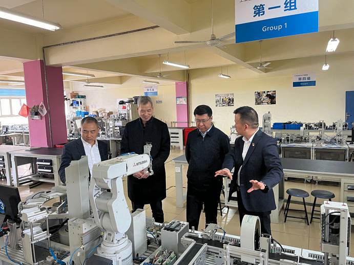 蘇州高新區(qū)人社局一行人實地考察了學院機電一體化技術(shù)、電氣自動化技術(shù)、發(fā)電廠及電力系統(tǒng)等專業(yè)實習實訓場地,深入了解了學?!爱a(chǎn)教融合、校企合作、工學結(jié)合”人才培養(yǎng)模式的落地實施,對學校的辦學理念和人才育成模式高度認可。