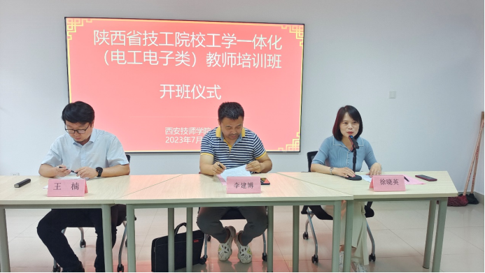 為貫徹落實黨的二十大精神和習近平總書記關于技能人才工作重要指示精神,進一步提高全省技工院校教師工學一體化教學水平,7月3日,陜西省技工院校工學一體化(電工電子類)教師培訓班在學院順利開班。陜西省技工院校指導中心李建博老師、學院副院長徐曉英、學院培訓中心主任王楠以及本期50余名學員參加了開班儀式。
