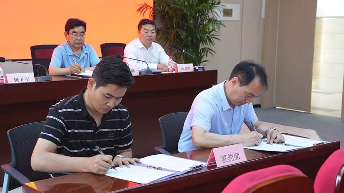 若羌縣技工學(xué)校黨委委員、副校長王延彬、阜康技師學(xué)院副校長鐘振紅分別與陜西天益教育科技有限公司副總經(jīng)理魏旬,簽訂了產(chǎn)教融合校企合作戰(zhàn)略合作協(xié)議。