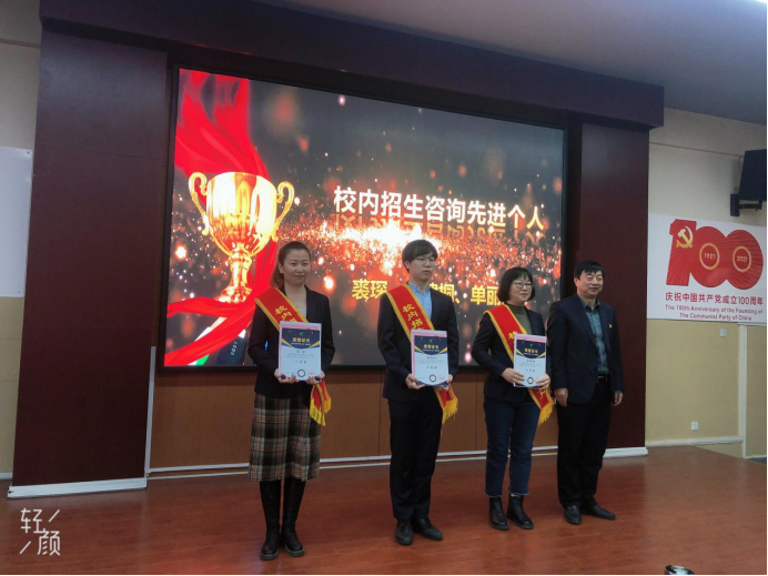 學(xué)院總會(huì)計(jì)師白寶成宣讀表彰決定,獲獎(jiǎng)老師通過視頻串燒的方式展示了對(duì)2022年招生的信心。大家一致認(rèn)為要不斷加強(qiáng)學(xué)院內(nèi)涵建設(shè),提升服務(wù)意識(shí),用特色專業(yè)吸引學(xué)生,用良好師德學(xué)風(fēng)吸引學(xué)生,用優(yōu)秀的教學(xué)成果和正能量的宣傳吸引學(xué)生,用“一切為了學(xué)生、為了學(xué)生的一切”感召學(xué)生,讓更多的優(yōu)秀學(xué)生選擇我們學(xué)院。
