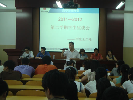 為進一步提高服務(wù)質(zhì)量,在學(xué)習(xí)和生活等各方面為同學(xué)們的健康成長創(chuàng)造更為便利、舒適的條件,聽取同學(xué)們對學(xué)院的教學(xué)、管理等方面工作的意見和建議,學(xué)生工作處于6月12日分別在咸陽校區(qū)教學(xué)樓C座301室和昆明路校區(qū)107教室召開了本學(xué)期學(xué)生座談會,出席會議的有學(xué)生工作處副處長李智、楊坤,各相關(guān)部門代表、各系室學(xué)管老師、全院112名學(xué)生代表及院學(xué)生會代表。