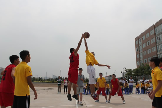 參觀結(jié)束之后,活力激情的兩院學(xué)生友誼籃球賽開場了,籃球啦啦隊表演了青春飛揚(yáng)的健美操以活躍賽場,兩旁的觀眾越聚越多。一聲哨響,鮮紅和亮黃在賽場上開始了角逐,大家展現(xiàn)了精湛的籃球技術(shù)和年輕人拼搏向上的精神風(fēng)貌,場面激烈、扣人心弦,場外,觀眾為雙方隊員吶喊、助威。兩隊頻頻打出精彩配合、快攻,最終我院取得了本次籃球友誼賽的勝利,比賽在和諧的氣氛中圓滿結(jié)束。