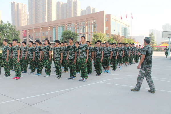 在這軍訓(xùn)的日子里,全體同學(xué)聽(tīng)從教官的指揮,嚴(yán)格遵守各項(xiàng)規(guī)章制度。全封閉式的軍事化管理和訓(xùn)練方式,讓每個(gè)學(xué)生養(yǎng)成了不怕苦、不怕累,不怕流血、不怕流汗的精神和作風(fēng)。每天,同學(xué)們需要整理內(nèi)務(wù),以此來(lái)提升紀(jì)律性和執(zhí)行力,并通過(guò)拳操練習(xí)、站軍姿、立正稍息、停止間轉(zhuǎn)法、跨立、蹲下、敬禮、齊步(跑步)走等訓(xùn)練項(xiàng)目磨練意志。而最后,當(dāng)嘹亮的軍歌唱響整個(gè)練兵場(chǎng)的時(shí)候,在場(chǎng)的帶隊(duì)老師全都被他們感動(dòng),也為他們感到驕傲與自豪。