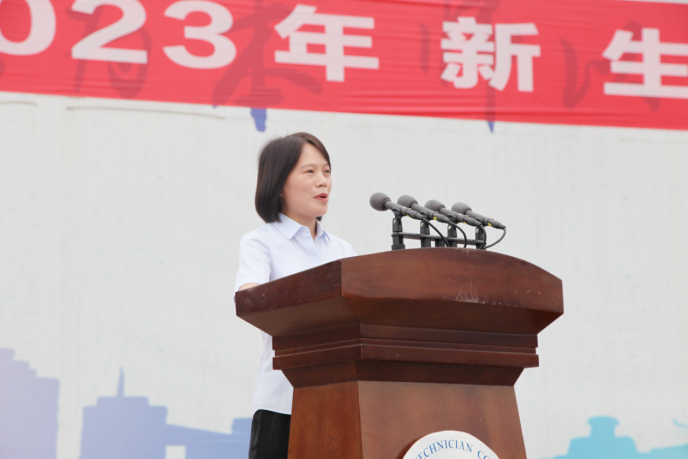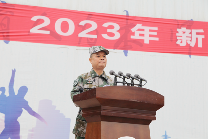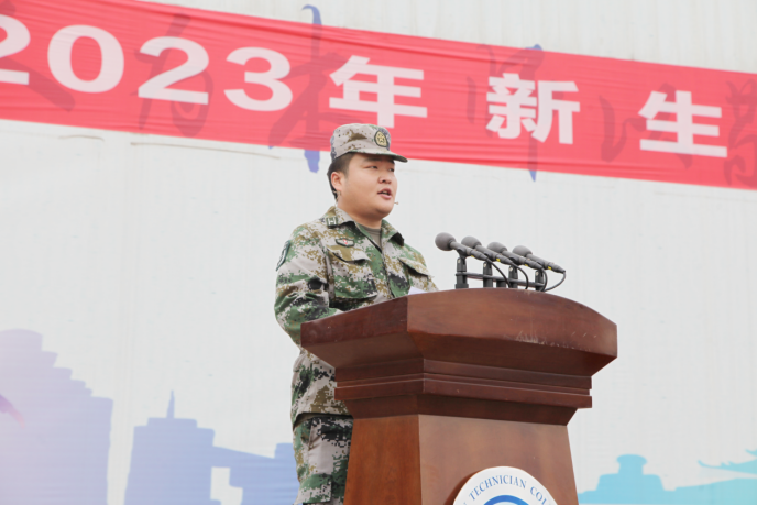 在全體師生熱烈的掌聲中,孫占亞書記向軍訓(xùn)團(tuán)授軍訓(xùn)團(tuán)團(tuán)旗,并宣布2023年新生軍訓(xùn)開始。