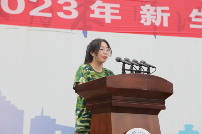 軍訓(xùn)團(tuán)團(tuán)長(zhǎng)黃建生鼓勵(lì)參訓(xùn)新生通過軍訓(xùn)提高政治思想覺悟,增強(qiáng)國防觀念,增強(qiáng)集體主義精神和組織紀(jì)律觀念,磨練意志,順利完成軍訓(xùn)任務(wù)。軍訓(xùn)教官代表與學(xué)生代表相繼作表態(tài)發(fā)言。