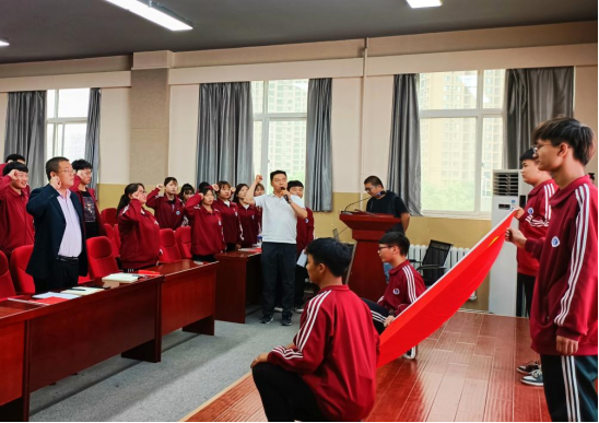 “我志愿加入中國(guó)共產(chǎn)主義青年團(tuán),堅(jiān)決擁護(hù)中國(guó)共產(chǎn)黨的領(lǐng)導(dǎo),遵守團(tuán)的章程……為共產(chǎn)主義而奮斗”,團(tuán)總支書記李峰老師帶領(lǐng)大家重溫了入團(tuán)誓詞,青春誓言、高昂雄渾,表達(dá)了同學(xué)們對(duì)共青團(tuán)組織的無(wú)限向往和為團(tuán)組織增光添彩的豪邁激情。