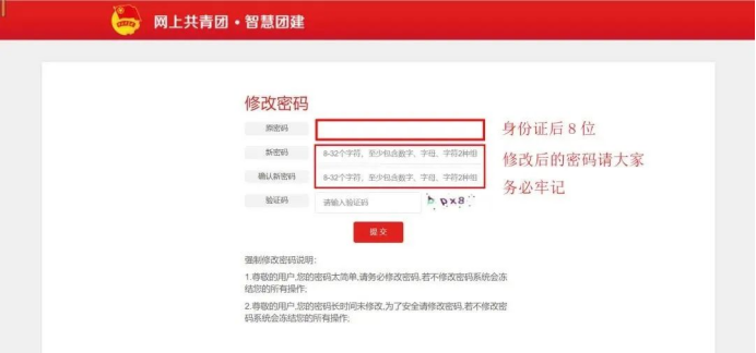 1.若顯示身份證或密碼錯誤,請聯(lián)系原學(xué)校確認(rèn)本人是否已被錄入“智慧團建”系統(tǒng);若確認(rèn)在系統(tǒng)內(nèi),可讓原學(xué)校本級或直屬上級團支部管理員生成密碼重置碼,拿到重置碼后,打開系統(tǒng)首頁,選擇“忘記密碼”,按照頁面提示操作即可。