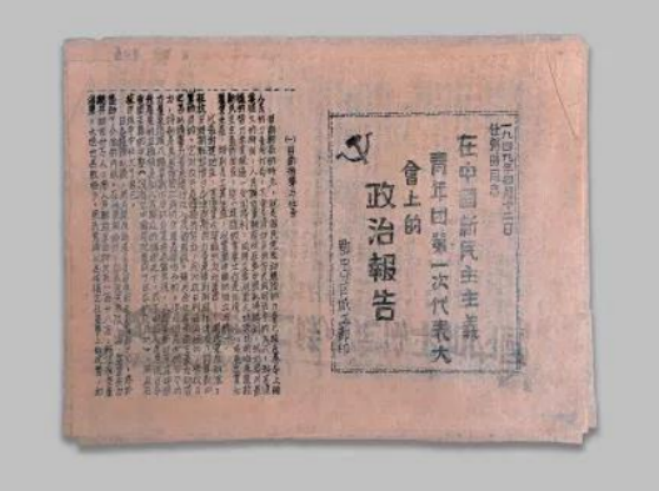 圖為任弼時(shí)《在中國新民主主義青年團(tuán)第一次代表大會(huì)上的政治報(bào)告》