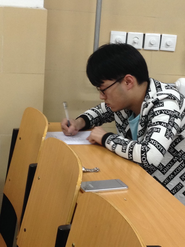 2016422日下午1430,經(jīng)過一個(gè)星期的黨課知識(shí)學(xué)習(xí),第五黨支部在C-401對(duì)本期參加培訓(xùn)的學(xué)員進(jìn)行了黨課知識(shí)考試,所有學(xué)員均按時(shí)參加,體現(xiàn)了同學(xué)們積極的思想風(fēng)貌。