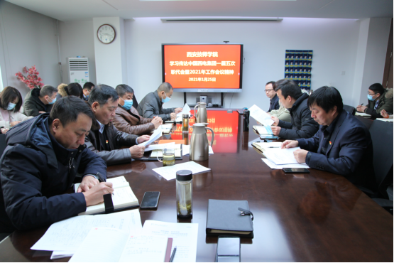 2021年1月25日上午,西安技師學(xué)院黨委組織召開(kāi)會(huì)議,傳達(dá)學(xué)習(xí)中國(guó)西電集團(tuán)一屆五次職代會(huì)暨2021年工作會(huì)議精神。技師學(xué)院領(lǐng)導(dǎo)班子成員、全體中層干部、工會(huì)主席、各分工主席共計(jì)30余人參加了會(huì)議。會(huì)議由技師學(xué)院黨委副書(shū)記羅文科主持。