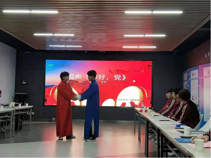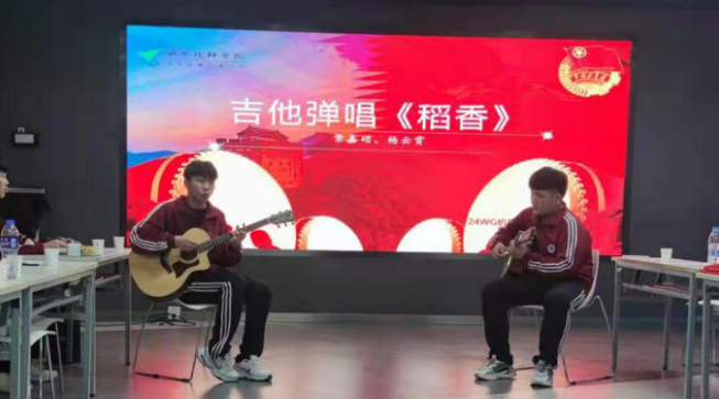 交流會(huì)上,24WG機(jī)電一班團(tuán)支部書記吉翔同學(xué)以互問互答的方式向大家提出黨史小問題,同學(xué)們進(jìn)行搶答,共同學(xué)習(xí)黨史知識(shí);史念同學(xué)向大家分享了她參觀八路軍西安辦事處紀(jì)念館的感想心得;最后,全體團(tuán)員進(jìn)行了文藝表演。高云普、白巖松和李南杰三位同學(xué)為大家?guī)砝收b《祖國(guó)啊,我親愛的祖國(guó)》;尚孝中、宋星宇、李彥錫、李睿琦和武旭同學(xué)表演合唱 《團(tuán)結(jié)就是力量》;常嘉碩、楊云霄同學(xué)帶來吉他彈唱《稻香》;吉翔、李嘉亮和黃一然同學(xué)帶來朗誦《少年中國(guó)說》;王智斌、張博表演了相聲《你好,黨》。