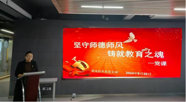 為進(jìn)一步推進(jìn)師德師風(fēng)建設(shè),落實(shí)立德樹人目標(biāo),加強(qiáng)教師教書育人的責(zé)任感、使命感、榮譽(yù)感,規(guī)范教師職業(yè)行為,激發(fā)教師對(duì)教育工作的熱情,打造一支“有理想信念、有道德情操、有扎實(shí)學(xué)識(shí)、有仁愛之心”的教師隊(duì)伍,9月20日下午,機(jī)電技術(shù)系黨支部書記張琳娜以“堅(jiān)守師德師風(fēng)、鑄就教育之魂”為主題,為全體黨員講授了一節(jié)專題黨課。
