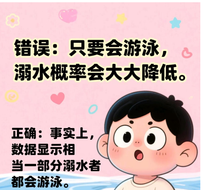 (√)事實上,數據顯示相當一部分溺水者都會游泳,大部分初學者在游泳池(靜水)學得皮毛,根本不足以應對自然水域的復雜情況,很多人對自己的水性都過于自信。