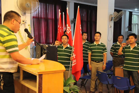 工業(yè)自動(dòng)化系副主任黃磊代表全體外出招生宣傳小組的成員進(jìn)行了充滿激情與必勝信心的發(fā)言,極富感染力的發(fā)言感染了全體在場(chǎng)成員。發(fā)言結(jié)束后,大家一道在黃主任領(lǐng)誓下進(jìn)行了莊嚴(yán)的宣誓,“百煉成鋼、百日留芳,拼搏進(jìn)取、再創(chuàng)輝煌”!