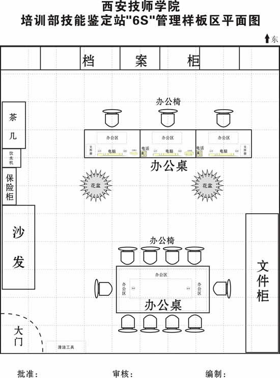 我院自開展“6S”管理活動以來,各項相關工作正在按照計劃分步實施。各部門能夠在學院"6S"推進管理小組和本部門工作小組的指導下,認真學習6S管理相關知識,按照6S管理標準要求,積極開展工作。為進一步按我院"6S"推進管理小組制定的相關實施方案將"6S"管理活動引向深入,現階段,各部門依據“6S”管理的基本原則、管理規(guī)定、基本標準并結合學院實際,已選定各部門自己的“6S”管理首推樣板區(qū),制定出詳細的工作計劃。并將責任落實到人。