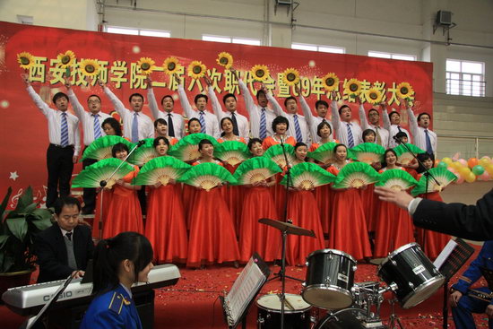 按照學(xué)院工會的安排部署,全體教職員工以分會為單位組成8個合唱團(tuán),自選歌曲一首,必唱歌曲—司歌《光榮的西電人》。悠揚(yáng)的歌聲,激昂的節(jié)奏,唱出技師學(xué)院人如火的激情;整齊的服裝,新穎的創(chuàng)意,響亮的口號,體現(xiàn)出團(tuán)隊(duì)的風(fēng)采;高亢的歌聲,激情澎湃,展現(xiàn)出演唱者的壯志雄心。“共和國成長的道路上,西電的名字多響亮...”,每當(dāng)司歌的旋律響起時,賽場的氣氛就達(dá)到一個高潮,整場比賽高潮迭起,氣氛熱烈。有讓人如癡如醉,身臨其境的司歌;感人肺腑,將熱愛祖國、熱愛西電、熱愛技師學(xué)院的濃濃情意表達(dá)的淋漓盡致。最后,“凱歌共唱”迎新春教職工合唱比賽在全體人員共唱司歌聲中圓滿落幕。