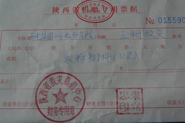 2010 年,我國(guó)西南地區(qū)災(zāi)情嚴(yán)重、大地龜裂。災(zāi)情時(shí)時(shí)刻刻牽動(dòng)著西安技師學(xué)院每一位教職工和學(xué)生的心,溫情愛(ài)心也開(kāi)始在這里大面積匯聚。全體師生積極響應(yīng)學(xué)院號(hào)召,共計(jì)籌集善款18775.2 元,這里面有教師的愛(ài)心捐贈(zèng)9690元,更有孩子們苦心積攢的零花錢9085.2元。 2010 4 14 7 時(shí) 49 分災(zāi)難接踵而來(lái),青海省玉樹縣發(fā)生了 7.1 級(jí)的地震。西安技師學(xué)院立刻號(hào)召全體教師向?yàn)?zāi)區(qū)捐獻(xiàn)的棉衣、棉被。在短短不到半天的時(shí)間里,全體教師共計(jì)籌集衣物987件,學(xué)生自發(fā)捐款291.1 元。