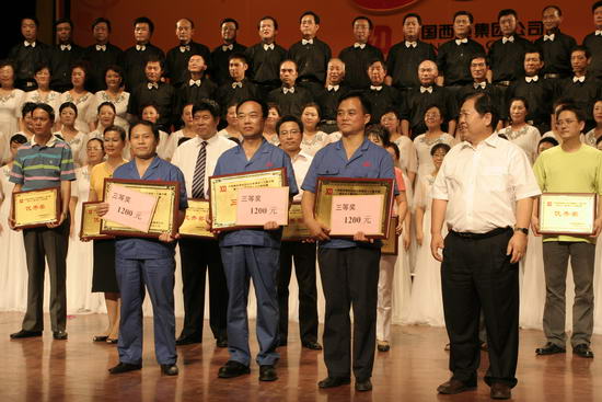 此次比賽共有15個(gè)單位參加,每個(gè)單位都派出了精兵強(qiáng)將,排列了最強(qiáng)陣容。我院黨政領(lǐng)導(dǎo)和80多位員工參加了本次合唱,在不到半個(gè)月的時(shí)間內(nèi),合唱團(tuán)上上下下?tīng)奚倨谛菹r(shí)間,戰(zhàn)高溫、斗酷熱,在做好招生工作和新生報(bào)到等工作的同時(shí),團(tuán)結(jié)一心刻苦排練。當(dāng)晚,我院代表隊(duì)隊(duì)員個(gè)個(gè)精神抖擻、神采飛揚(yáng),演唱了《祝福西電》、《光榮的西電人》、《我們走在大路上》等蘊(yùn)含對(duì)西電公司明天美好祝福的曲目,獲得了三等獎(jiǎng)的好成績(jī)。