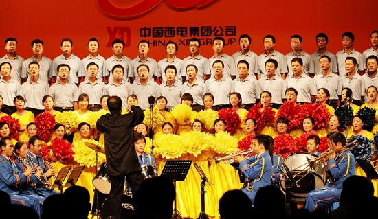 為了慶祝中華人民共和國(guó)成立六十周年暨西電集團(tuán)公司建司五十周年,展現(xiàn)集團(tuán)職工熱愛(ài)祖國(guó)、熱愛(ài)黨、熱愛(ài)西電的精神風(fēng)貌,鼓舞廣大職工團(tuán)結(jié)一致,努力克服金融危機(jī)對(duì)企業(yè)的沖擊,凝心聚力,萬(wàn)眾一心,努力取得更好的成績(jī)。西電集團(tuán)公司在826日晚上舉辦西電集團(tuán)公司“慶祝中華人民共和國(guó)成立六十周年暨西電集團(tuán)建司五十周年”職工大合唱比賽。