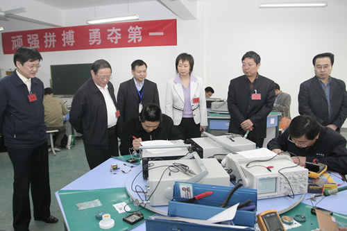 上午9時(shí)整,省總工會副主席毛新遠(yuǎn)、市總工會常務(wù)副主席白興時(shí)、市總工會副主席裴建潮、市勞動和社會保障局副局長王曉萍等領(lǐng)導(dǎo)到我院咸陽校區(qū)檢查此次比賽活動。學(xué)院副院長王德意就此次高技能人才技能大賽決賽的組織情況作了匯報(bào)。隨后,院長李長江、副院長王德意、賀惠民、紀(jì)委書記袁建章陪同省、市級領(lǐng)導(dǎo)檢查巡視了鉗工、維修電工的比賽現(xiàn)場。