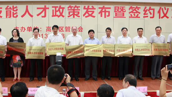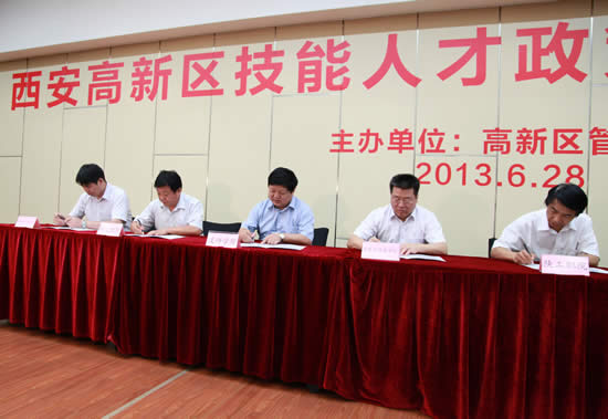 為保證高新區(qū)工業(yè)穩(wěn)定增長(zhǎng),為先進(jìn)制造型企業(yè)提供技能人才保障,促進(jìn)校企合作,6月28日,西安高新區(qū)管委會(huì)組織召開了“西安高新區(qū)技能人才政策發(fā)布暨簽約儀式”。參加簽約儀式的有先進(jìn)制造企業(yè)代表、職業(yè)院校代表近百人。我院院長(zhǎng)李長(zhǎng)江、副院長(zhǎng)趙輝參加了簽約儀式。
