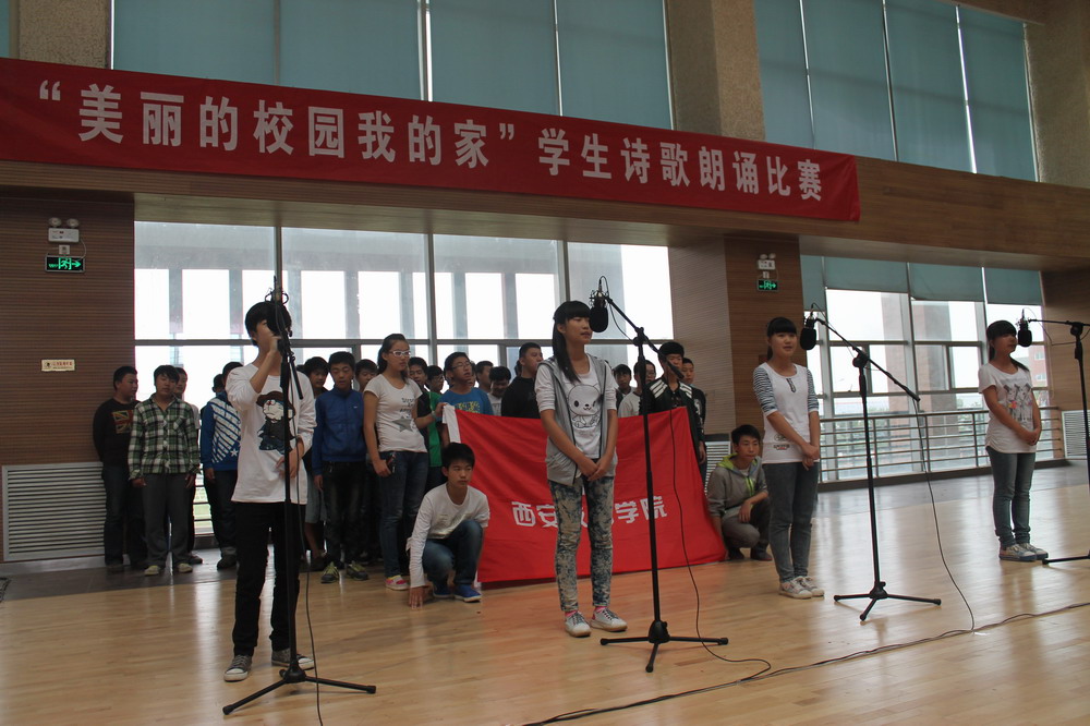為了使我院學生以昂揚的精神風貌和積極向上的學習態(tài)度在校愉快的學習與生活,進一步促進校園文化建設(shè),培養(yǎng)學生具有良好的道德觀念和職業(yè)素養(yǎng),2013年9月25日學生工作處組織開展了“美麗校園我的家”詩歌朗誦活動。