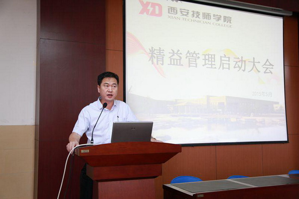 會(huì)議由副院長(zhǎng)趙輝主持,院領(lǐng)導(dǎo)班子李長(zhǎng)江、袁建章,全院中層干部,班組長(zhǎng)及教師代表共有100余人參加了會(huì)議。趙輝副院長(zhǎng)介紹了精益管理活動(dòng)的目的及意義,宣讀了西安技師學(xué)院《關(guān)于成立精益管理推進(jìn)機(jī)構(gòu)及開(kāi)展有關(guān)工作的通知 》;
