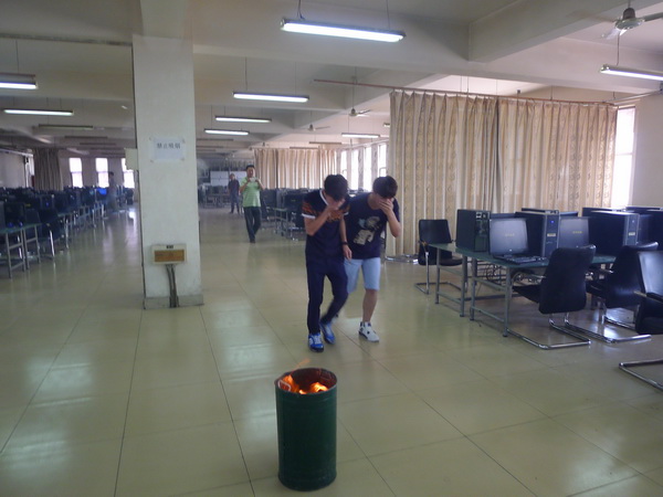 為了確保學(xué)生在校園內(nèi)遇到火災(zāi)等特殊情況,能在最短的時間內(nèi)迅速撤離現(xiàn)場,疏散到安全區(qū)域,同時也為了加強安全教育和管理,廣泛深入地開展應(yīng)急疏散工作,使師生的應(yīng)急疏散能力、自我保護能力以及安全意識得到提高。2015625日下午,信息與藝術(shù)系師生在E4樓計算機機房進行了一次火災(zāi)安全疏散演練。