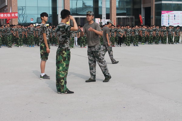 在部隊(duì)教官的親切關(guān)懷和嚴(yán)格訓(xùn)練下,短短幾天時(shí)間,齊步走、正步走、齊步變正步、解散、集合及分列式等預(yù)定訓(xùn)練科目已初見成效。教官手把手教,學(xué)生認(rèn)真的學(xué),在軍訓(xùn)隊(duì)列訓(xùn)練中,方隊(duì)整齊,精神飽滿,步伐矯健、口令準(zhǔn)確、聲音嘹亮。新生們對(duì)軍訓(xùn)都充滿了熱情和信心,紛紛表示不會(huì)辜負(fù)教官和老師們對(duì)自己的關(guān)心和期望。除了每天對(duì)學(xué)生進(jìn)行基本體能訓(xùn)練外,還進(jìn)行紀(jì)律教育、坐姿、站姿等軍人基本軍容軍紀(jì)常規(guī)教育;國防知識(shí)教育、學(xué)唱軍歌、講軍事故事、撰寫軍訓(xùn)體會(huì)等。 在這里,他們體驗(yàn)了軍營生活,進(jìn)行意志的磨煉和體能的訓(xùn)練。