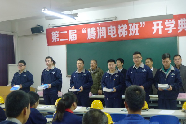 開學(xué)典禮上,首屆“滕潤電梯班“優(yōu)秀學(xué)生代表介紹了參加電梯班課程對自己的工作以及生活的影響,總結(jié)了自己的學(xué)習(xí)經(jīng)驗(yàn)并對第二屆”滕潤電梯班“的學(xué)生提出了要求與期望;第二屆”滕潤電梯班“的學(xué)生代表在發(fā)言中明確表示了在”滕潤電梯班“的培訓(xùn)過程中會努力學(xué)習(xí),不辜負(fù)領(lǐng)導(dǎo)與前輩的殷切希望。最后,由與會的領(lǐng)導(dǎo)為大家分發(fā)學(xué)習(xí)資料。