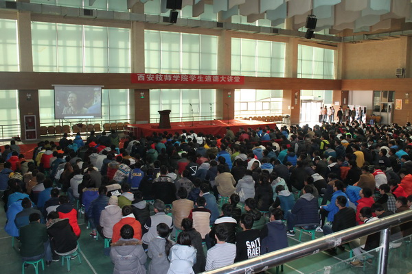 2015年12月15日下午3點(diǎn)45分,西安技師學(xué)院學(xué)生“道德講堂”活動(dòng)在文體中心二樓隆重舉行,本次活動(dòng)由學(xué)生工作處主辦,主題是“做一個(gè)有道德的人”。各系主任、全體學(xué)管老師、班主任以及各系學(xué)生代表共1200余人到場(chǎng)參加了活動(dòng)。