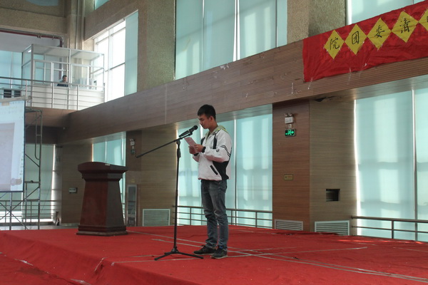 活動在莊嚴(yán)的國歌聲中開始,在院團(tuán)委廣播站主持人李娜同學(xué)的帶領(lǐng)下,現(xiàn)場的同學(xué)們又重新回到了那個戰(zhàn)火紛飛的年代,憶往昔崢嶸歲月稠,同學(xué)們充分體會到今天幸福生活的來之不易,一定要珍惜現(xiàn)在的美好時光。