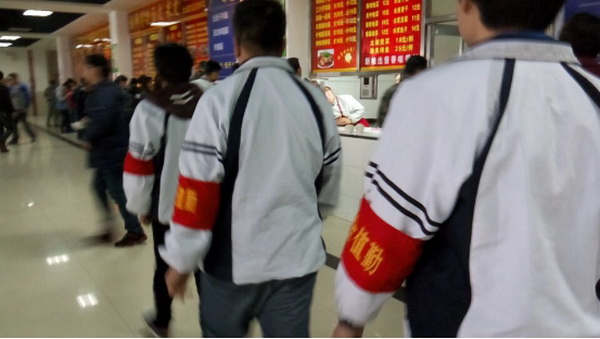 學(xué)生會生活部的同學(xué)們在餐廳進(jìn)行巡查