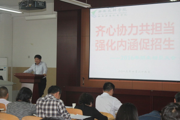 2016429日下午,學(xué)院在咸陽校區(qū)C302室召開了2016年招生動員大會。院領(lǐng)導(dǎo)及全體教工參加了本次大會,大會由副院長楊廣明主持。