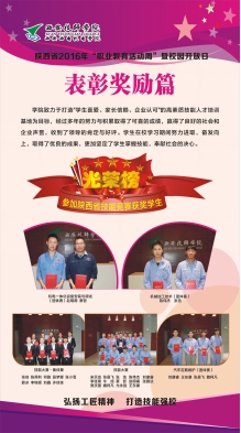 適逢陜西省2016年“職業(yè)教育活動周”啟動儀式暨校園開放周在我院舉辦之際 ,學(xué)生工作處舉了“德育展板展示活動。其目的是引導(dǎo)了學(xué)生在感恩、誠信、文明和爭做“大國工匠”等方面提高認(rèn)識,通過本次展示活動,促進(jìn)了學(xué)生的德育教育工作,也使來校參加家長會的一千余名家長了解到學(xué)院的各項(xiàng)德育活動的開展情況,取得了良好的效果