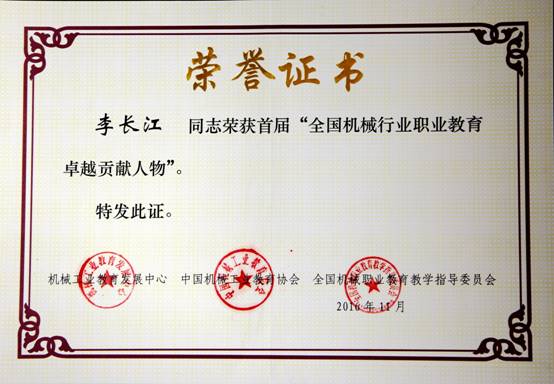 在機械工業(yè)教育發(fā)展中心、中國機械工業(yè)教育協(xié)會、全國機械職業(yè)教育教學指導委員會及《機械職業(yè)教育》雜志共同舉辦的首屆“全國機械行業(yè)職業(yè)教育卓越貢獻人物”評選活動中,西安技師學院院長李長江被授予“全國機械行業(yè)職業(yè)教育卓越貢獻人物”榮譽稱號。