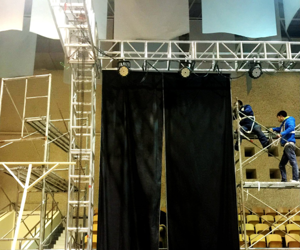 工作人員對會場側(cè)面進(jìn)行遮光處理