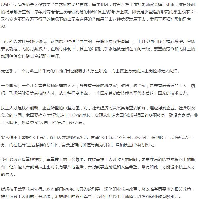 【知識】“不屑于當技工”心態(tài)不破除,談何工匠精神?