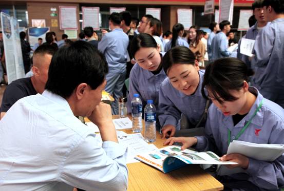 上午10點(diǎn),在學(xué)院負(fù)責(zé)就業(yè)的老師和班主任的組織下,19屆畢業(yè)生統(tǒng)一著實(shí)習(xí)工裝進(jìn)入會(huì)場(chǎng)。同學(xué)們手持精心準(zhǔn)備的簡(jiǎn)歷,充滿自信的來到心儀的用工企業(yè)前,與企業(yè)工作人員進(jìn)行交流,主動(dòng)介紹個(gè)人情況并了解企業(yè)相關(guān)信息。各企業(yè)代表也對(duì)學(xué)院畢業(yè)生整體精神面貌表示滿意,認(rèn)真解答同學(xué)們的疑問,招聘會(huì)現(xiàn)場(chǎng)氣氛異常熱烈。一家物業(yè)公司負(fù)責(zé)招聘的工作人員表示:“我們很歡迎咱們學(xué)校這種既有大專學(xué)歷又有高級(jí)工職業(yè)資格的高技能人才加入公司,因?yàn)樗麄冊(cè)谛F陂g通過“工學(xué)交替”的教學(xué)模式,已經(jīng)對(duì)企業(yè)和崗位有了初步認(rèn)識(shí),相信進(jìn)入單位后可以很快適應(yīng),這對(duì)企業(yè)來說是非常重要的”。