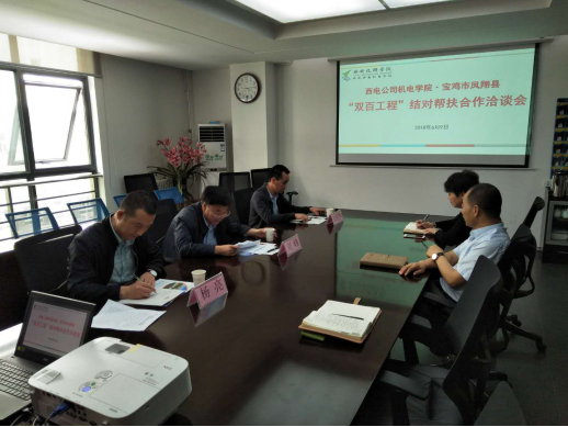 寶雞市鳳翔縣劉局長(zhǎng)縣長(zhǎng)一行,來我院開展“雙百工程”結(jié)對(duì)幫扶合作洽談會(huì)座談會(huì)上,馮小平副院長(zhǎng)對(duì)劉局長(zhǎng)一行來到我院進(jìn)行交流座談表示歡迎,雙方介紹了與會(huì)人員。馮小平副院長(zhǎng)向客人介紹了我院基本情況和辦學(xué)優(yōu)勢(shì),他講到,學(xué)院高度重視“雙百工程”,今年高考剛結(jié)束,中考也即將到來,學(xué)院履行幫扶責(zé)任,接收鳳翔縣貧困適齡學(xué)生到學(xué)院就讀,希望鳳翔縣組織有就讀中職、高職意愿的鳳翔縣學(xué)生就讀我院,學(xué)院制定鳳翔縣戶籍貧困學(xué)生就讀我院學(xué)費(fèi)減免辦法,幫助貧困家庭學(xué)生完成學(xué)業(yè)。學(xué)院也樂意為鳳翔縣中學(xué)建“創(chuàng)意室”,開展“勞技課”進(jìn)校園活動(dòng),也歡迎鳳翔縣中學(xué)來我院開展游學(xué)活動(dòng)。