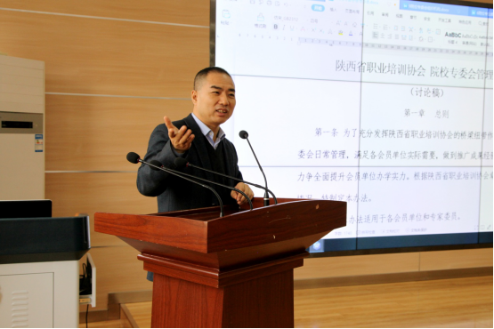 馮小平副院長介紹了參會代表和會議議程;陜西省職業(yè)協(xié)會副會長張明軍宣讀了院校專委會成立的決定;陜西省職業(yè)培訓(xùn)協(xié)會會長李長江、陜西省技工院校指導(dǎo)中心張藝共同進(jìn)行揭牌儀式,宣布陜西省職業(yè)培訓(xùn)協(xié)會院校專委會正式成立。