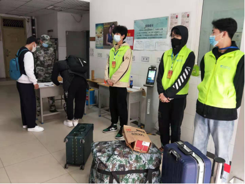 在疫情常態(tài)化情況下,為確保全體師生安全,本次開學(xué)仍采取錯(cuò)峰入校的做法,返校學(xué)生在學(xué)院大門口進(jìn)行消毒消殺,進(jìn)入安全通道后,掃碼、測(cè)溫、進(jìn)入校園。學(xué)院團(tuán)委組織學(xué)生志愿者為返校學(xué)生提供幫助,讓返校學(xué)生感受到了技師學(xué)院大家庭的關(guān)心與溫暖。進(jìn)入公寓樓時(shí),本學(xué)期剛剛?cè)腭v學(xué)院的駐校教官們對(duì)學(xué)生進(jìn)行測(cè)溫、登記,與同學(xué)們交流,以便快速融入學(xué)生,進(jìn)入準(zhǔn)軍事化管理的狀態(tài)。
