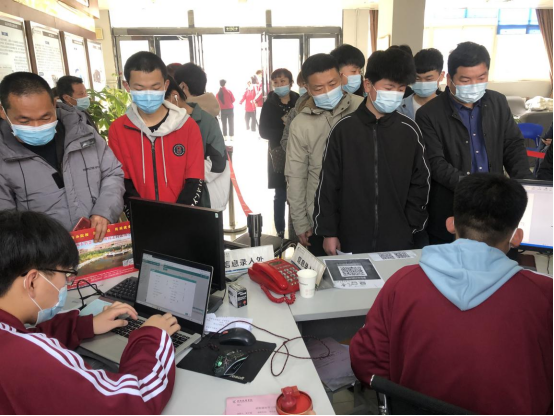 3月15日上午8時,就有新生陸續(xù)入校。經(jīng)過在學(xué)校門外進(jìn)行了行李消殺后,新生有序從北大門進(jìn)入,通過測溫區(qū)域,間隔1米排隊(duì),出示“健康碼”,在老師的指引下,前往招辦按照要求辦理各項(xiàng)入校手續(xù)。