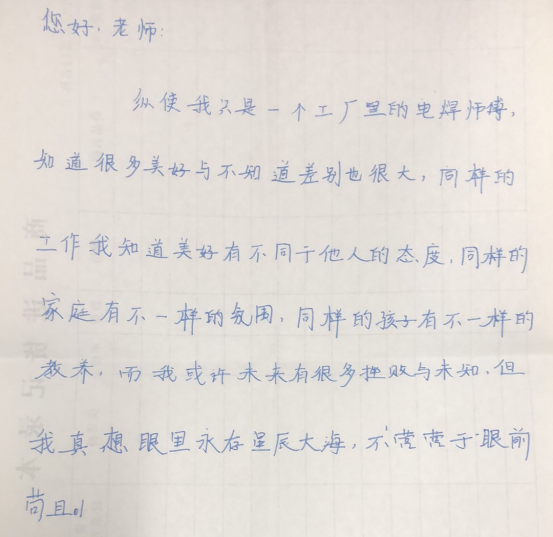 由于時(shí)間關(guān)系,學(xué)生面試結(jié)束后還專門(mén)將沒(méi)有表達(dá)的內(nèi)心想法寫(xiě)下來(lái)送給面試?yán)蠋?。機(jī)電系一個(gè)學(xué)生給老師說(shuō),感謝學(xué)校給他們這次表達(dá)展示自我的平臺(tái),以前一直是家長(zhǎng)和老師主導(dǎo)著他們的思想,這次面試他們有機(jī)會(huì)和老師在一起平等的交流溝通,將他們內(nèi)心想法表達(dá)出來(lái),他們也希望學(xué)校重視他們新時(shí)代00后的特點(diǎn)和個(gè)性,在學(xué)校管理和教學(xué)方面制定適合他們這代人的特色模式。