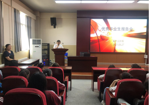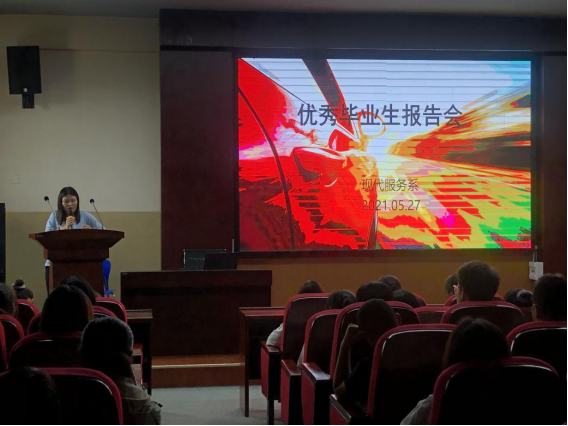 5月27日下午15:00,現(xiàn)代服務系在C-302召開了優(yōu)秀畢業(yè)生報告會。報告會由現(xiàn)代服務系主任王楠主持,18G財管劉夢竹、19G財管于文浩2名優(yōu)秀畢業(yè)生給服務系的同學們分享了各自上學時的學習方法、心得及走向職場后的工作經歷。