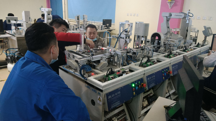 此次培訓(xùn)旨在加強人才儲備,提升員工的綜合技能水平。由學(xué)院培訓(xùn)中心牽頭,機電技術(shù)系總負責(zé),在為期3個多月的培訓(xùn)中,從三菱FX系列PLC、西門子PLC(1200)、人機界面HMI、伺服驅(qū)動以及變頻器驅(qū)動及工業(yè)機器人(ABB)等方面,完成陜汽集團維修電工共計45人的培訓(xùn),并達到了良好的培訓(xùn)效果。