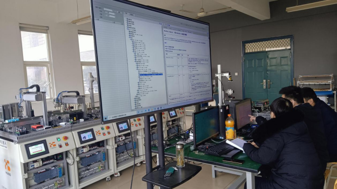 參加此次培訓(xùn)的有陜西國(guó)防工業(yè)職業(yè)技術(shù)學(xué)院、中國(guó)鐵路西安局集團(tuán)有限公司、咸陽職業(yè)技術(shù)學(xué)院三支職工參賽隊(duì),共6名選手。針對(duì)智能傳感器應(yīng)用系統(tǒng)的自動(dòng)裝配單元、涂膠貼標(biāo)單元、視覺檢測(cè)單元、機(jī)器人分揀單元及倉(cāng)儲(chǔ)單元的硬件連接及軟件控制等方面進(jìn)行深入學(xué)習(xí)分析。