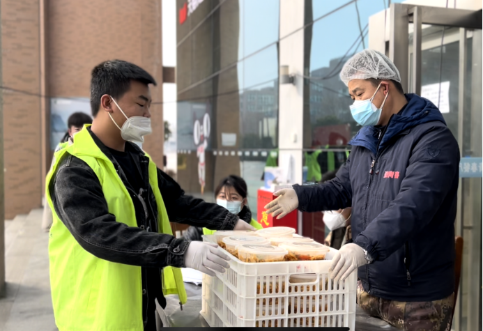 “疫情期間有太多讓人感動的瞬間,但是最感動我的就是在這樣寒冷的冬天,志愿者每天雷打不動送來的一日三餐,我能感覺到咱們的送餐效率越來越高了,飯菜品種也日漸豐富,這讓我們西技干飯人的快樂值也直線飆升”。