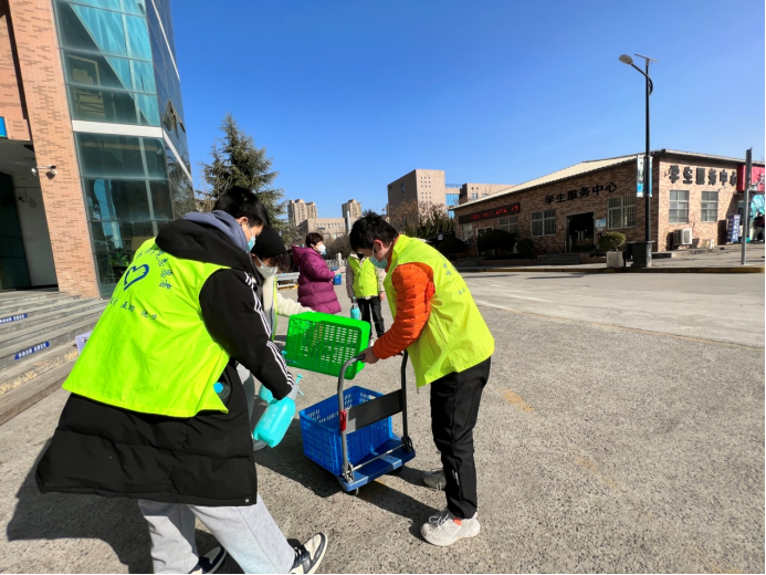 餐飲配送及服務(wù)保障專班由學(xué)院精益培訓(xùn)中心主任黃磊、陳龍會、高常喜、穆啟龍、潘佳樂、張潔6名老師及40名學(xué)生志愿者組成,主要負責(zé)為目前留校的4000余名師生提供配送餐服務(wù),協(xié)調(diào)2家餐飲公司和2家超市保障師生的飲食和購物需求,加強與食堂、超市、浴室、理發(fā)店的對接,做好學(xué)生在宿舍區(qū)的各類生活保障。
