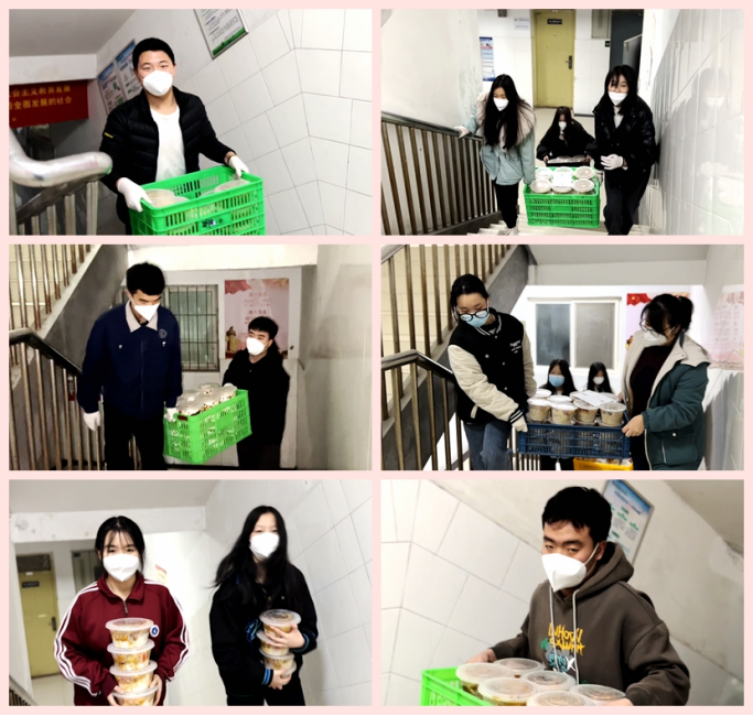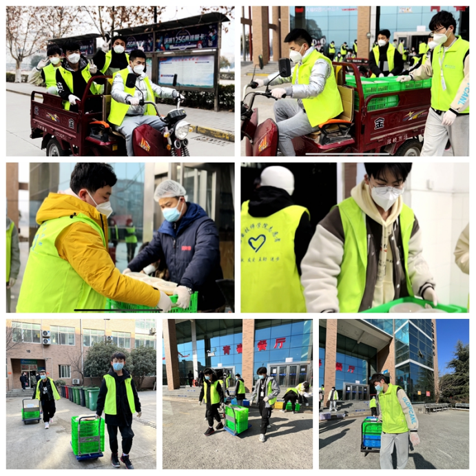 每天清晨,配送餐組的志愿者們?cè)缭绲貋淼讲蛷d門口,協(xié)助老師核定餐食數(shù)量,清洗、消殺送餐工具,搬運(yùn)餐筐,貼心為同學(xué)們配送餐......雖然天氣寒冷,但志愿者們干的熱火朝天,從餐廳門口到一棟棟宿舍樓,從晨曦到黃昏,那一抹抹身著綠色馬甲的身影,在寒風(fēng)中尤為醒目。他們用暖心的服務(wù)獲得同學(xué)們的一致好評(píng),用忙碌的身影詮釋著青年志愿者的責(zé)任與擔(dān)當(dāng)。